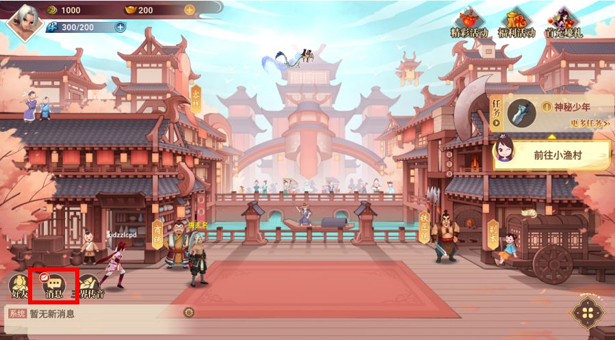 登录游戏后,点击左下角的【消息】: