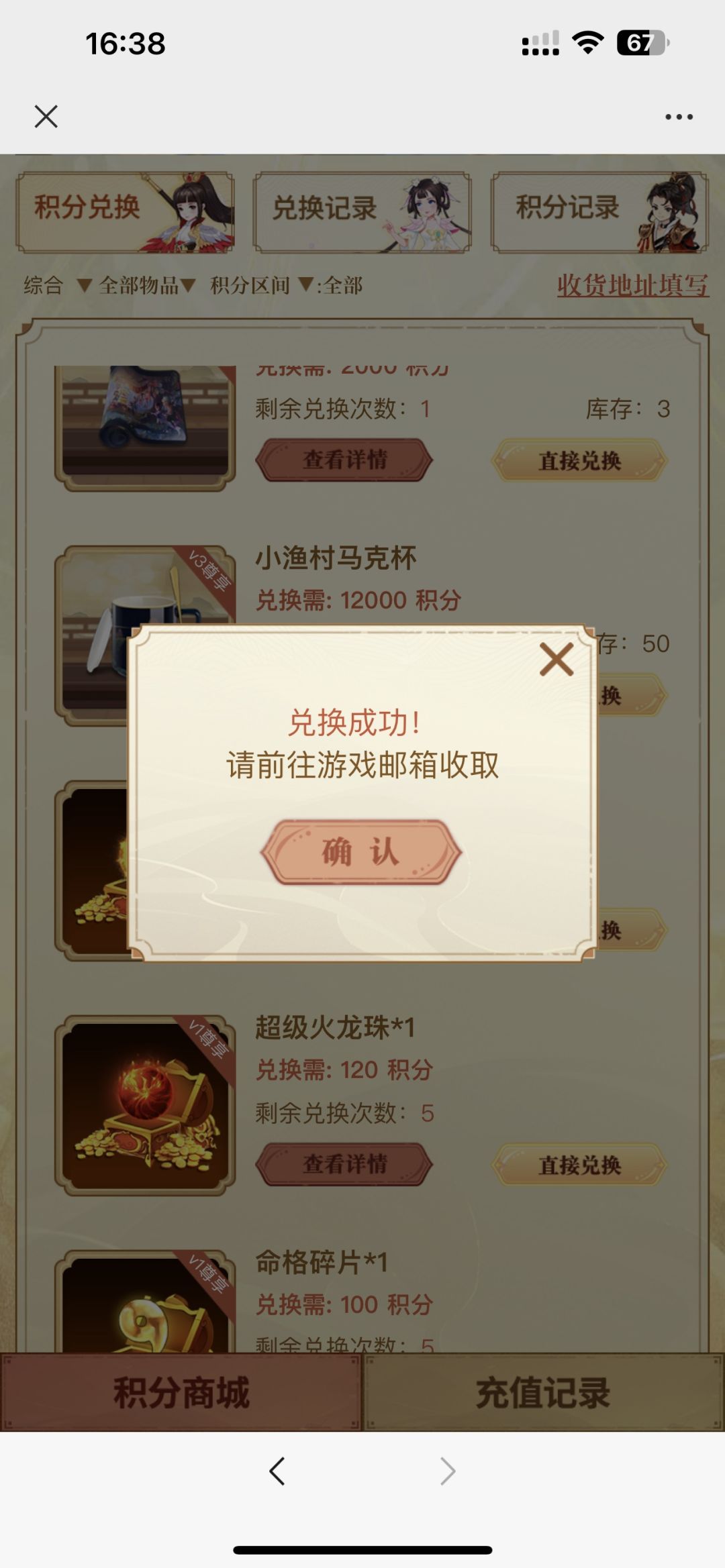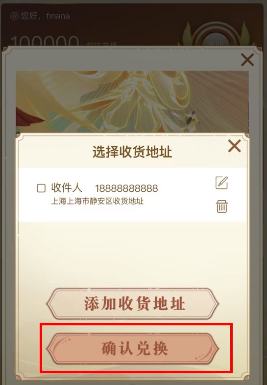 地址确认后,点击【确认兑换】即可完成兑换: