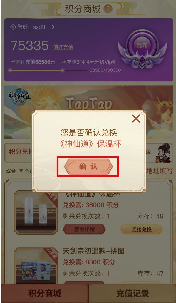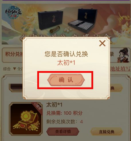 点击兑换后,系统将会弹出确认页面,点击【确认】进行下一步: