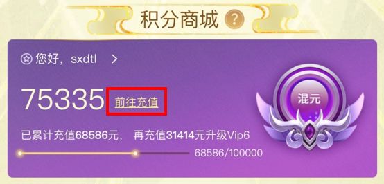 3.如需增加【商城积分】值,可点击 【前往充值】按钮进行充值