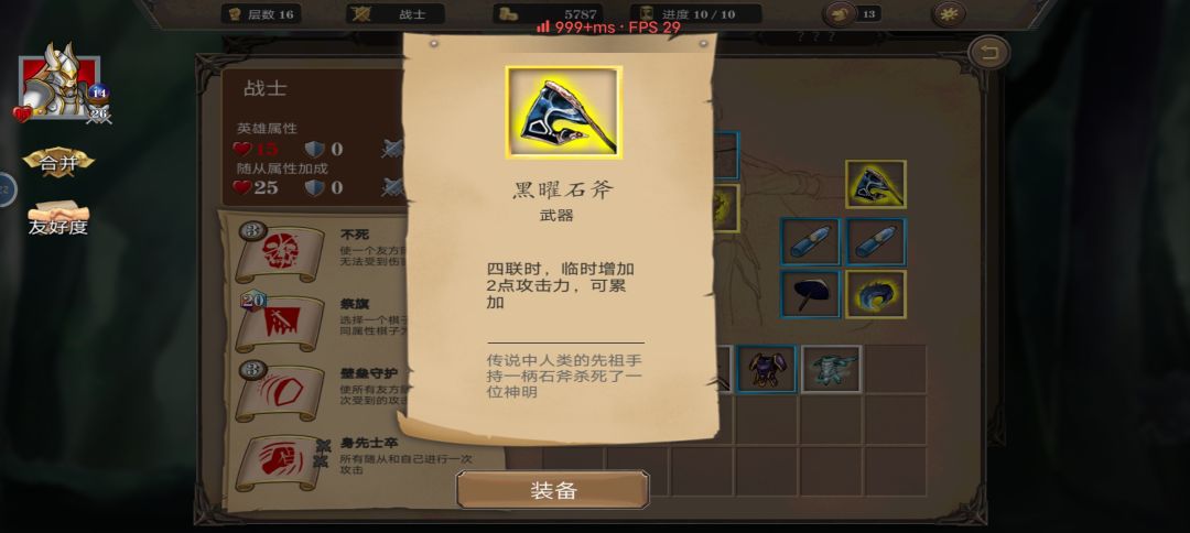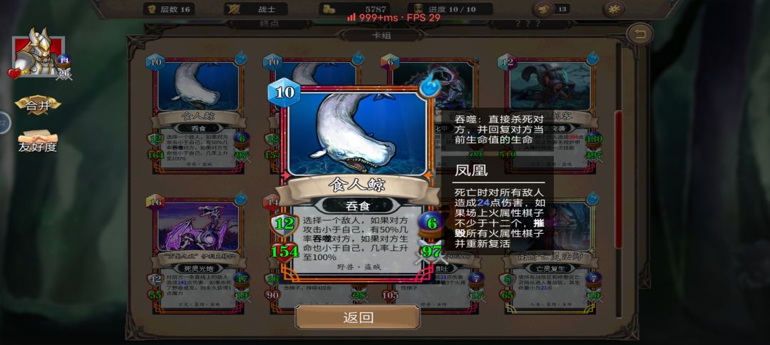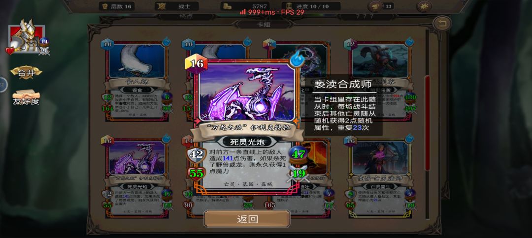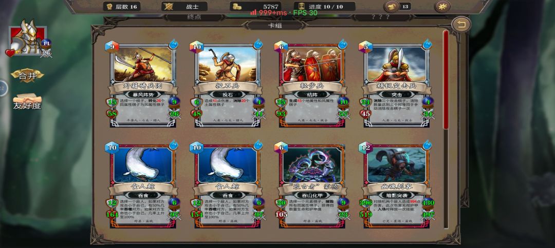 我想我已经无敌了。4连减英雄冷却项链加英雄技能无敌3会合,核心卡牌轻步兵一回合内无限4连减CD,套上4个无敌。下面看看我的核心卡牌,给你们看看这16层的卡牌数值。