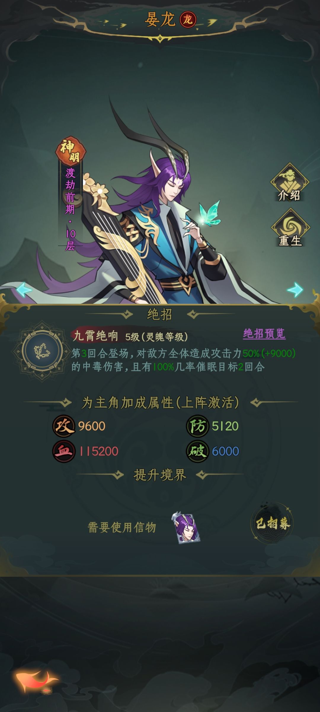 并且剑盾,魔神,玄牝都不是伤害技能,不会浪费掉火尖枪的必定暴击,那么第一轮的步驱会配合上剑盾的增伤,魔神玄牝的加攻,再有梼杌的破盾,必定暴击下只要不是被战力碾压,基本对方第一条命就没了。而且因为第三回合也不是伤害技能,不会打断晏龙的催眠。