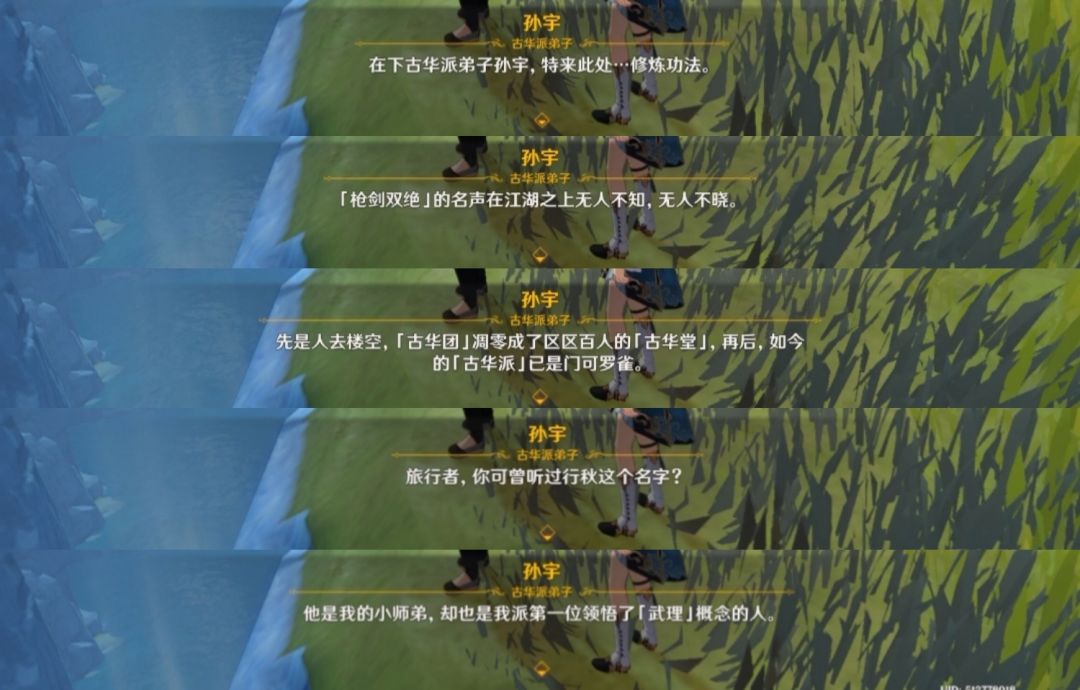 但其实非要说的话,地图上还是有一些古华派弟子的存在的。如上面提到的孙宇小雀儿师兄妹。璃月港中卖烤吃虎鱼的快刀陈,他还给了我们一把全服仅有一把的单手剑暗铁剑(可惜年少无知时把它给融了)