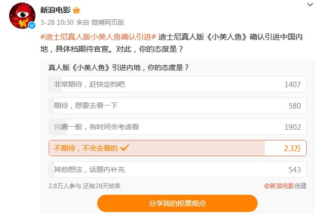 迪士尼电影中国微博官宣了,真人版《小美人鱼》即将全国献映,档期待定。