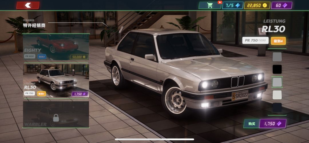 车辆较少(当前版本为6辆,其中4辆金币车,一辆课金车,一辆权限购买车),但建模较为精致