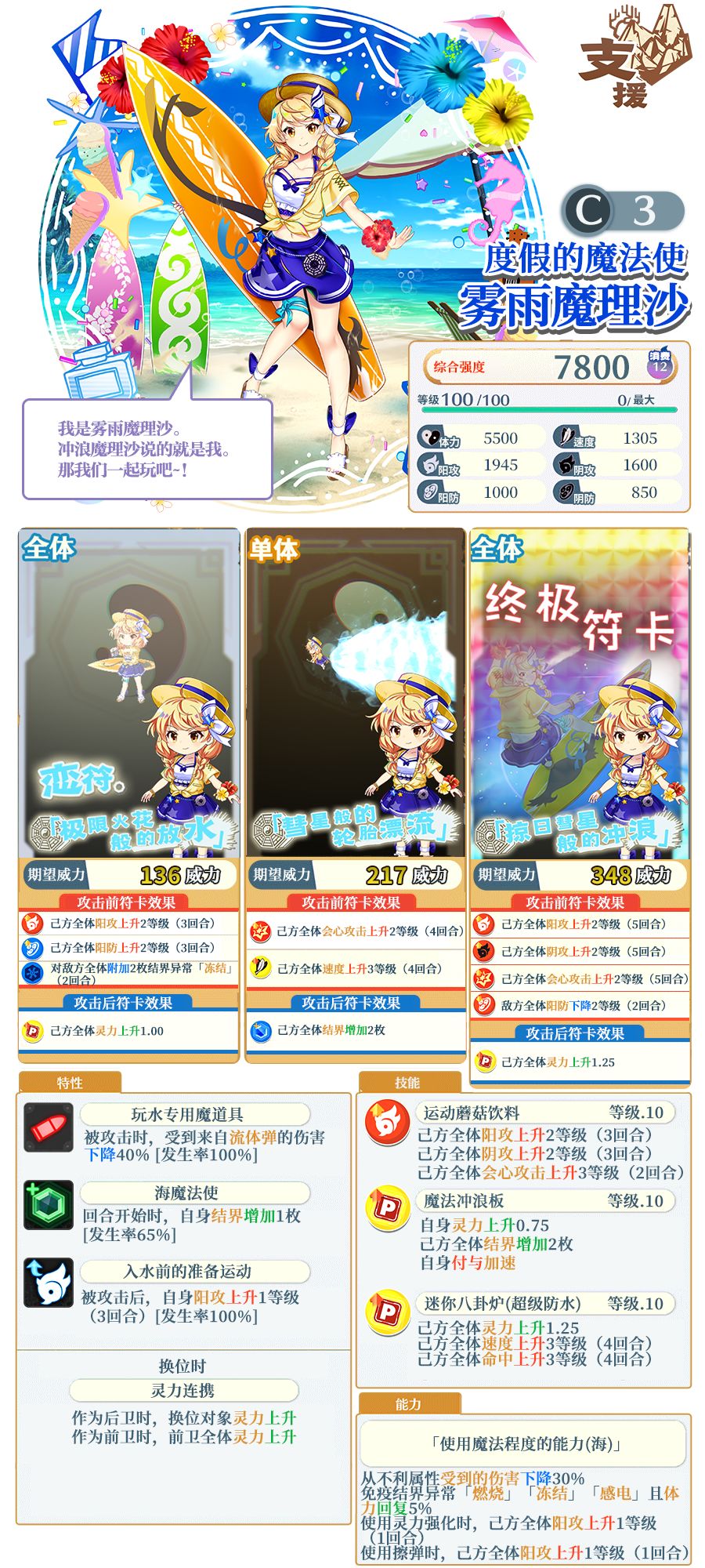 ※「度假的魔法使 雾雨魔理沙」是仅在EPIC限定祈愿中登场的角色。