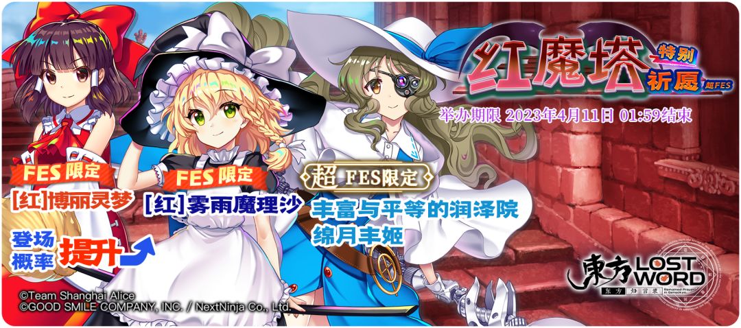 [红]雾雨魔理沙(A6)、[红]博丽灵梦(A6)和绵月丰姬(B3)登场概率提升的祈愿!