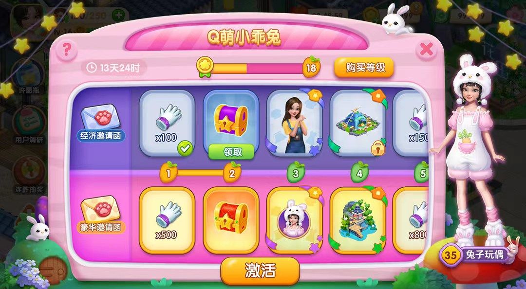 【Q萌小乖兔】:闯关收集积分,获取可爱的兔子玩偶服装!