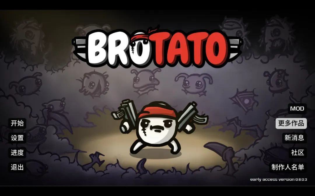 你要扮演一个能携带6把武器的土豆,置身于一张四方的地图里,不断有怪物向你逼近,将其击败这个过程需要你全神贯注,控制走位,躲避攻击。