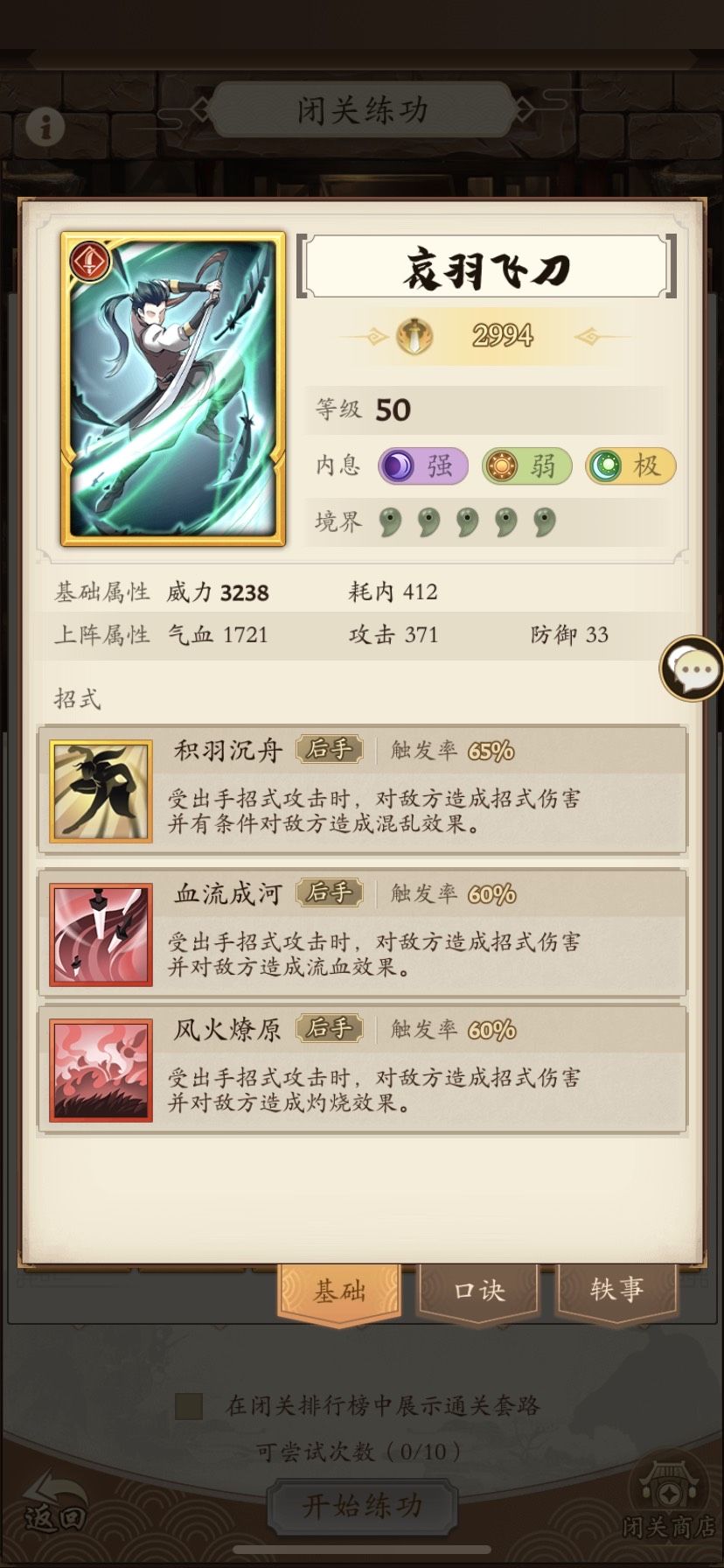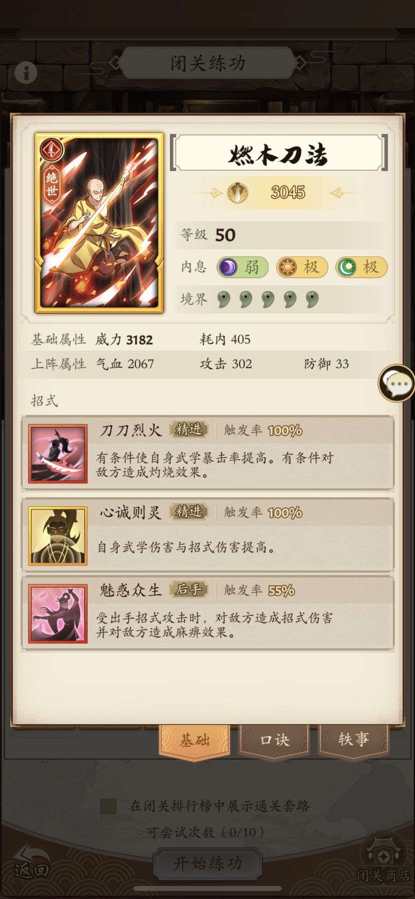 4出手装完后,就装后手,后手该提前就提前,这里的绝世燃木前制条件,很拖,(自己试了提前29回合左右,差距很大)直接归属到精进类,