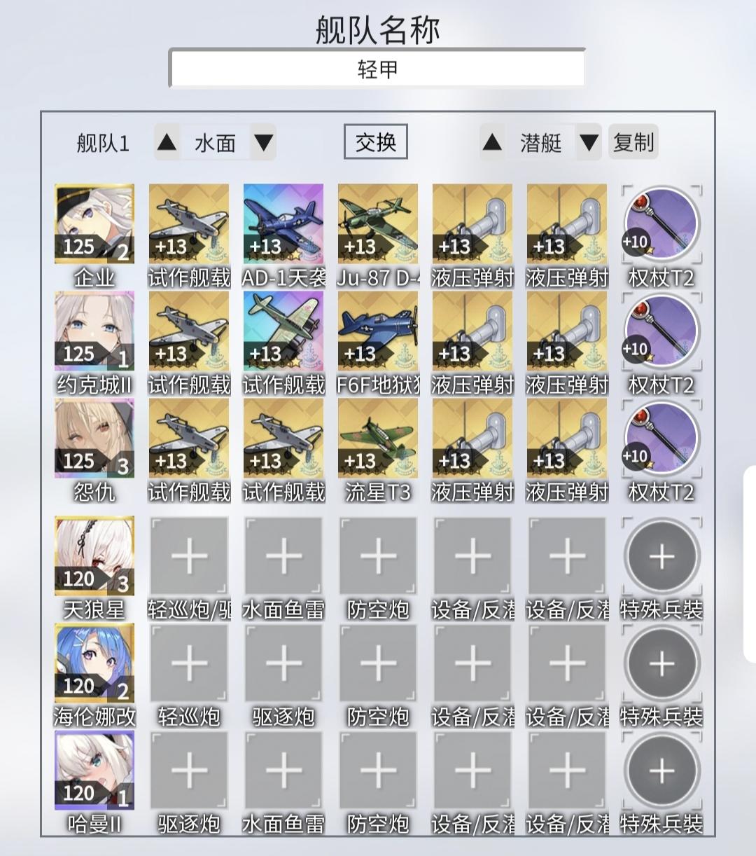 轻中甲比较适合美航出场,配合怨仇减机动很适合打高闪避敌人,再加上哈曼防空保隐蔽,可以说是主场作战了,所以我试了下不加耐久适应性,虽然经常演我但还是一刀了。
