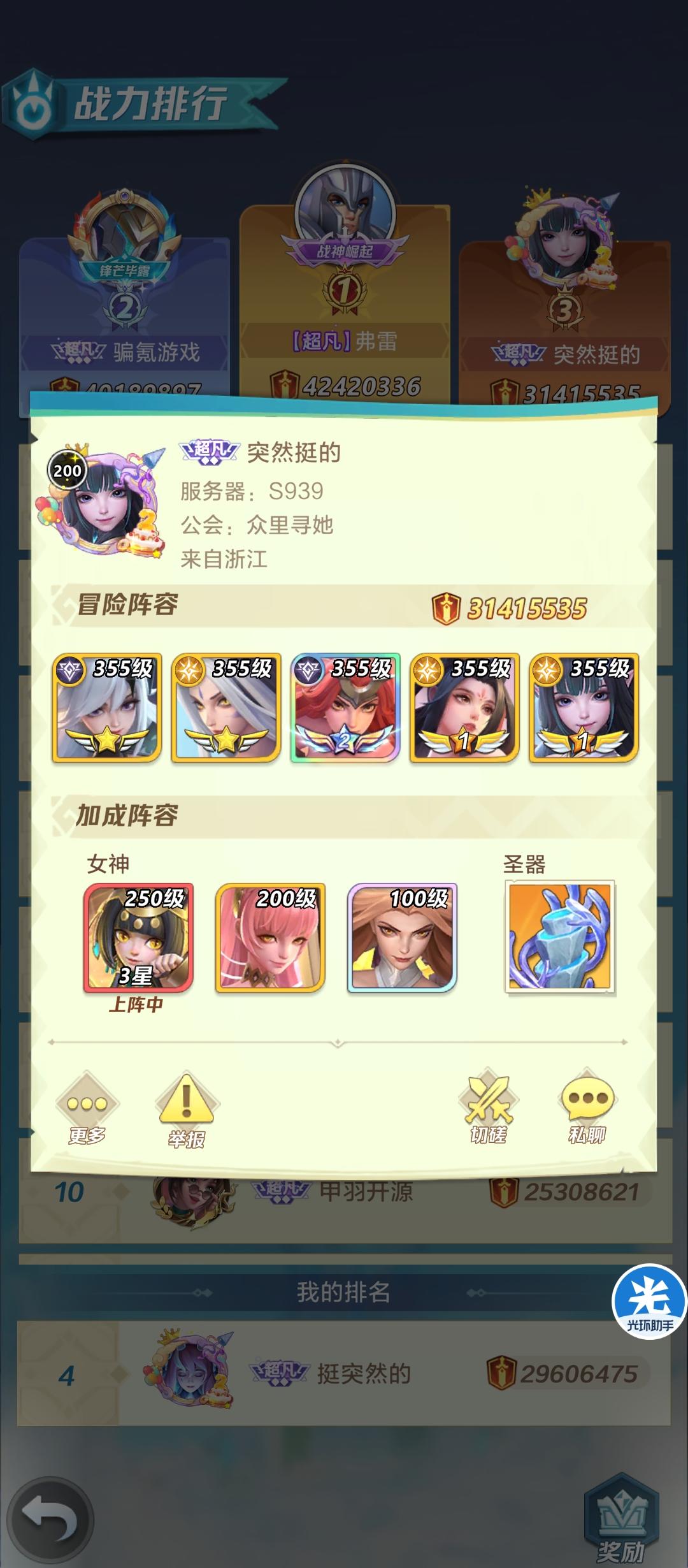 从年前开始,古古的很多次大更新/版本更新,战力狂涨,加上自己也有生活,就没有去研究什么阵容的,虽然战力在狂涨,但是经常被2000万的按在地上锤,之前的阵容战力拉到了3150万战力,见下图。