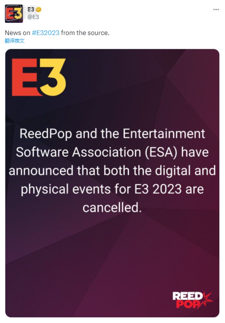 脱离了业内若干举足轻重的大厂支持,E3终于连苟延残喘都做不到了。3月30日,ESA官方宣布,2023年的E3,包括线下的实体活动和线上的直播,全部取消。