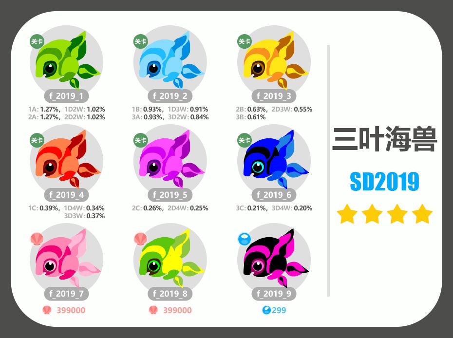 三叶海兽是三刀族4星鱼,4月1日上线,下线时间为5月1日。