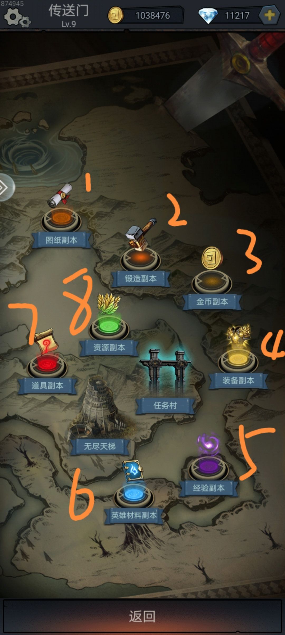 3.5一次钻石都不用刷,没吊用,金币经验少的一批,浪费钻石。7也没什么用。1.4可以钻石刷个两三次碰碰运气,1刷的图纸要材料做,最好做红装,原因后面说,4出的装备是图纸做不到的(图纸出不到的部位就是靠商店,战阵前线每期三个红部件,还有战阵前线商店50必买选定位置的任意套装橙部件,还有商店运气好会刷到想要的部件,但是五六百钻石起步一个红减,一开始我还肝战阵前线币 ,现在我发现没必要,橙部件没用,原因也是一样后面说)。6也是适当刷一刷,升星加的属性没吊用,六星之后不知道什么样,目前还没到。2.8刷爆,原因是城堡的材料呵呵哒,一小时一次收益,一天收益都不够做一件红装,8是因为在八部件全是红或者大半红的时候,宝石一打真的是属性爆炸,而且还掉最重要的升星石(前面的原因来了,为什么要红装不要橙装)升五星之后可以用109升星石+5装备等级,所以玩下去红装等级可以一直加,当然加多少我不知道,而橙部件比红部件少10%全装备加成,这差距很大了。
