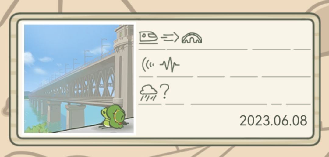 前行中遇到铁轨,快速跳跃前进。可能遇到了火车,躲了好一会儿才冒头出现,之后像蜗牛一样小心翼翼地缓速前行。(要注意安全呀)
