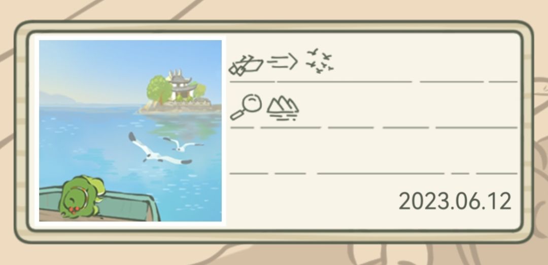 糯青乘到了一艘小船,晃晃悠悠地经过鸟群,向远处眺望时,发现了一座小岛。