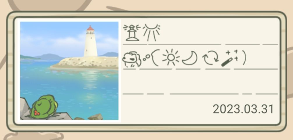 远远地看到一座灯塔,烈日当空照着灯塔。糯青在这里歇脚产生了新认知:日月转换会点亮灯塔。(可爱死了ฅฅ*,是哲学呱)