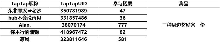 ‣本次活动将使用TapTap论坛抽奖工具开奖,请大家关注后续开奖贴并填写收件信息,若不及时参与或评论内容不符合要求则无法正常获奖,中奖名单及特殊奖项领奖事宜请关注后续开奖