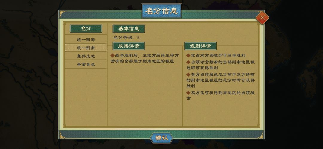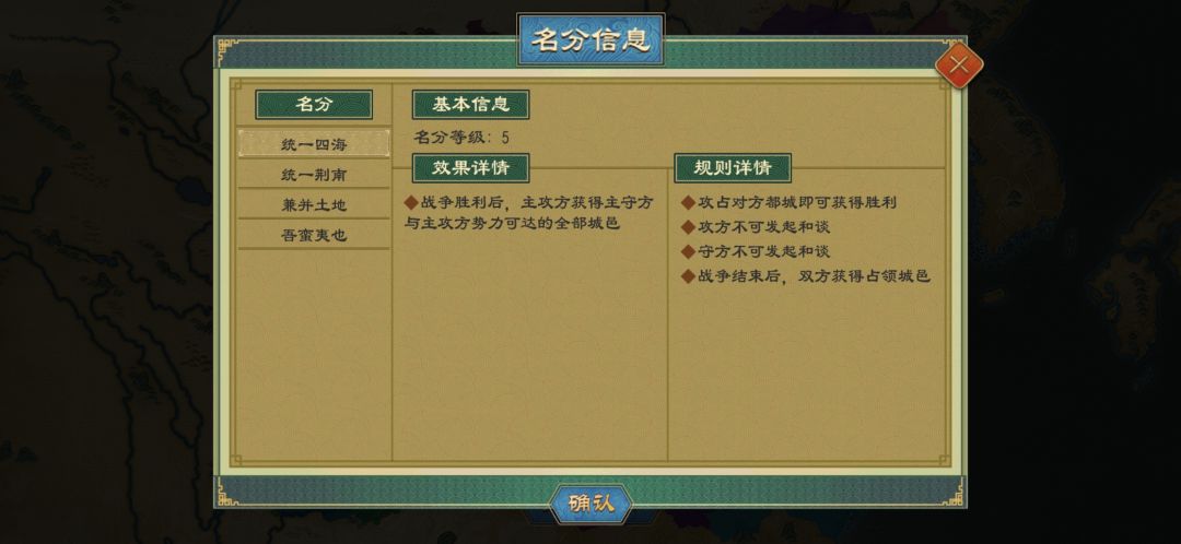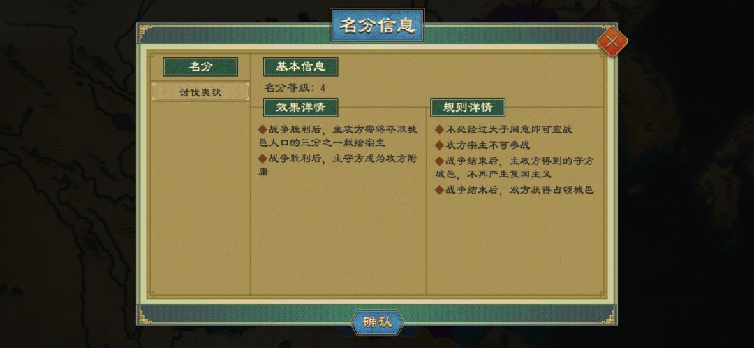 战争名分:尽量选择兼并土地,讨伐蛮夷等不产生复国主义的名分