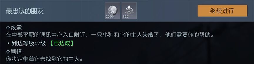 剧情-荒野见闻-勇敢的心-最忠诚的朋友,奖励:2000银币、100西部哨所声望。