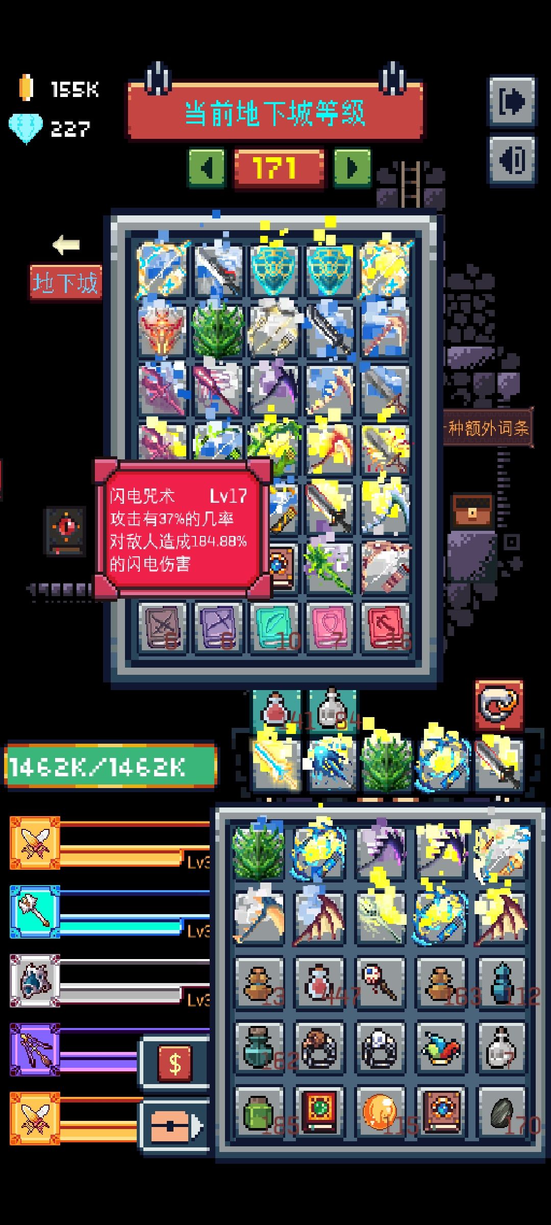 我一开始只能在95层刷刷装备,但刷出图中145级加3攻速特效的锤子后直接起飞,这版本的出路就是稳扎稳打,追求更高级的装备