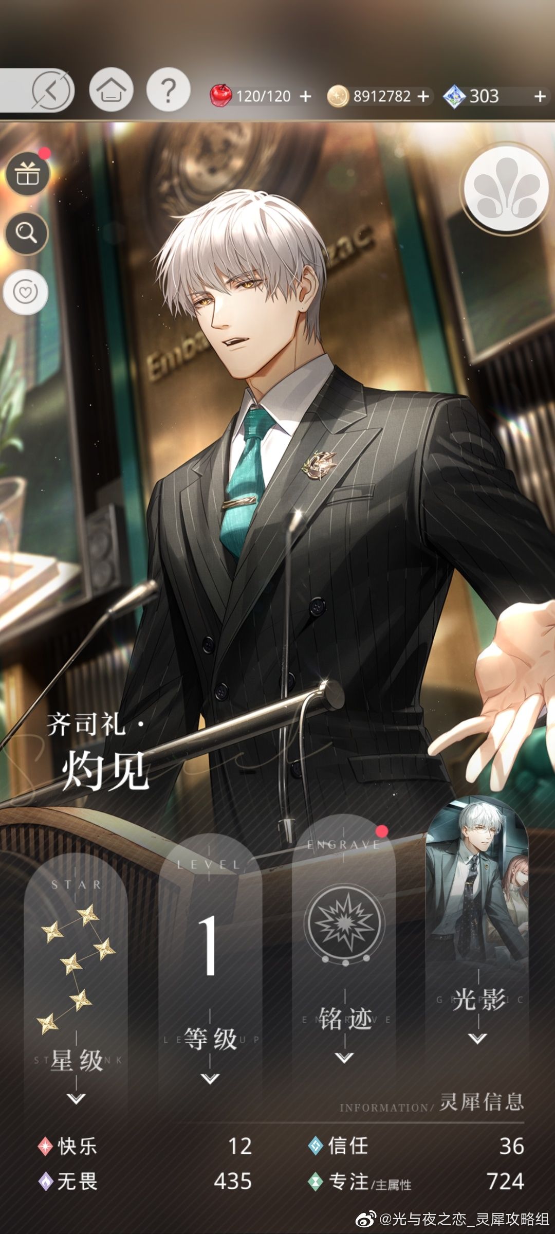 六星灵犀·齐司礼·灼见,主属性专注,副属性无畏,技能头脑风暴,以及二段光影材料一览。