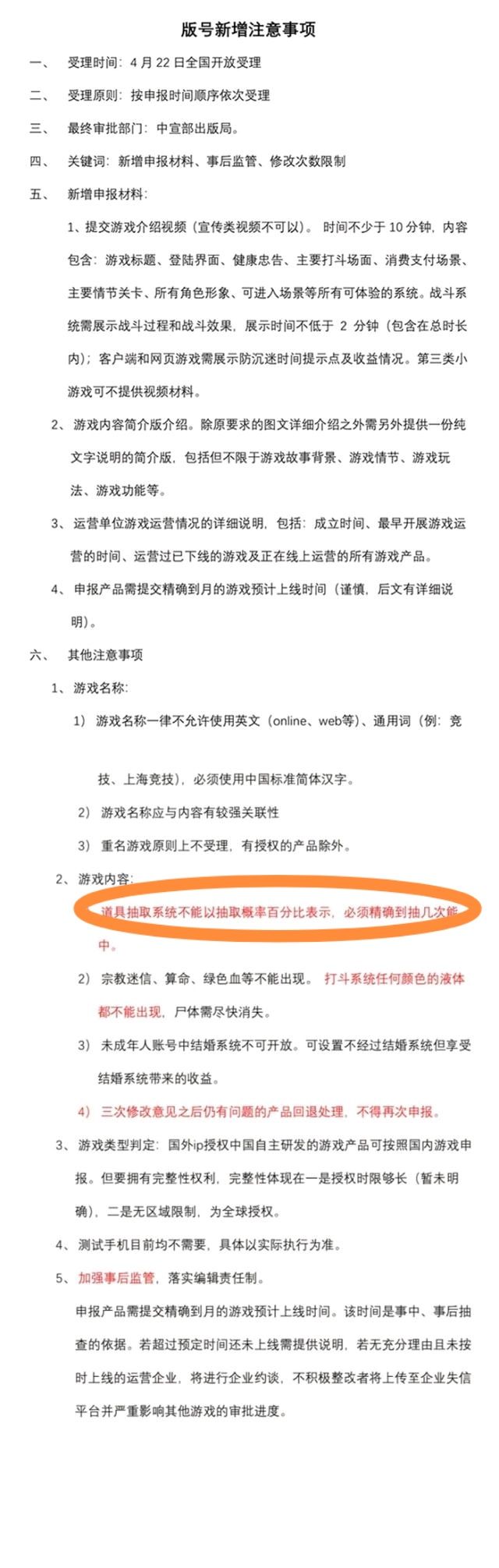 对了,加一张中宣局的版号新增事项,大家注意画圈部分