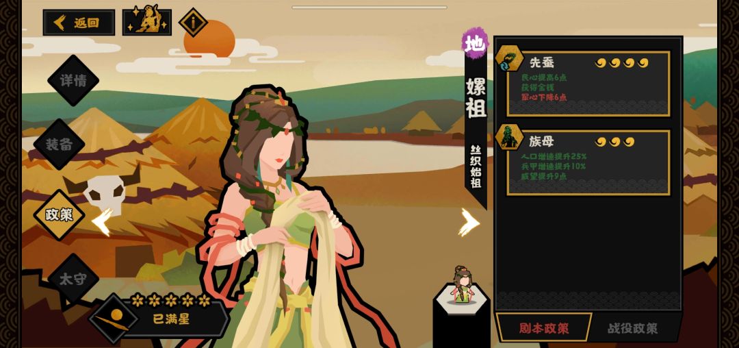 ①十分有特色的政策,在循环获得民心的同时还能获得金钱。对于缺钱玩家来说,这个政策非常好用。
