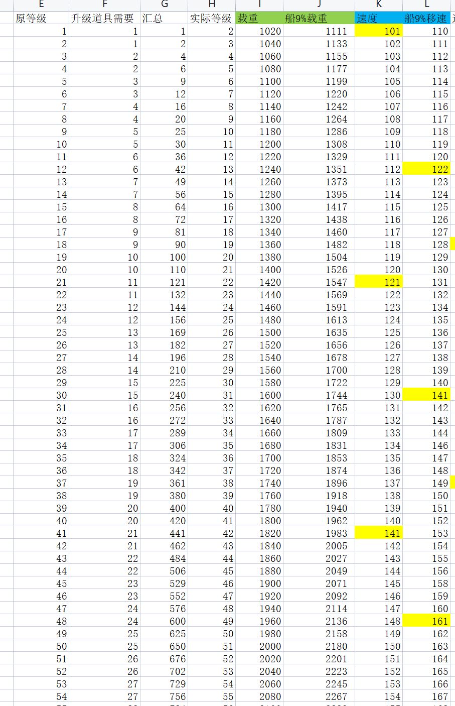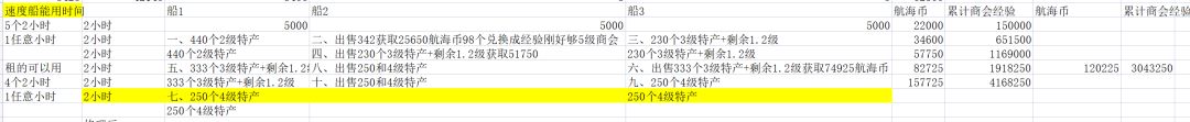 (4)以2小时为标准,速度船有阈值,不达标,升级无用。