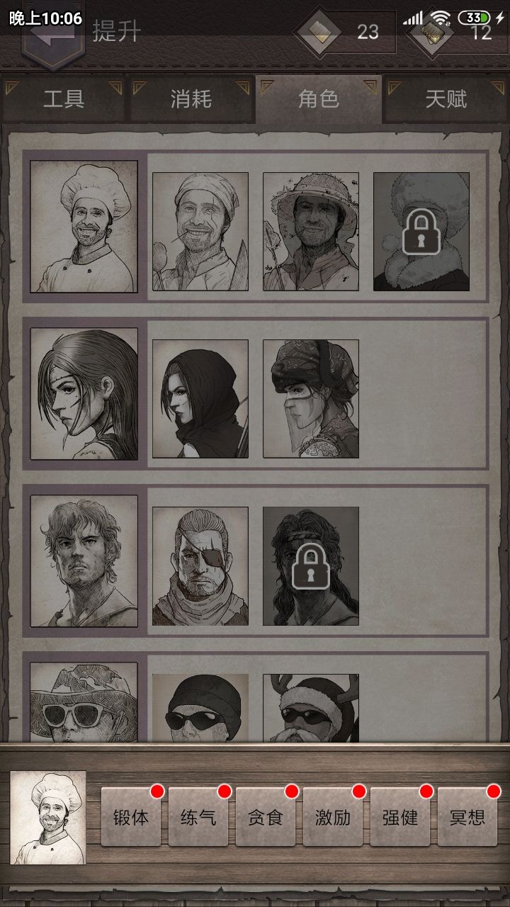 2.小哥——野外烧烤【自己瞎编的】,可以在野外制作烤肉,烤土豆,开局解锁【我拿这个都只是拿来减少背包容量的,小哥增益buff加7攻击力都拿生肉弄了】