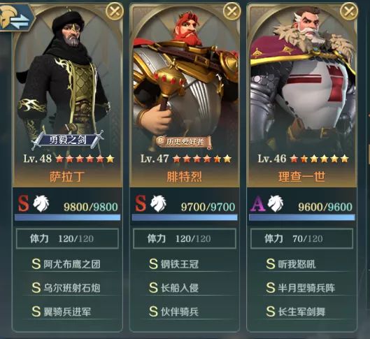 纯突比较看爆发能力,在这一点腓特烈和查理就可以配合萨拉丁打高爆发的阵容搭配了。