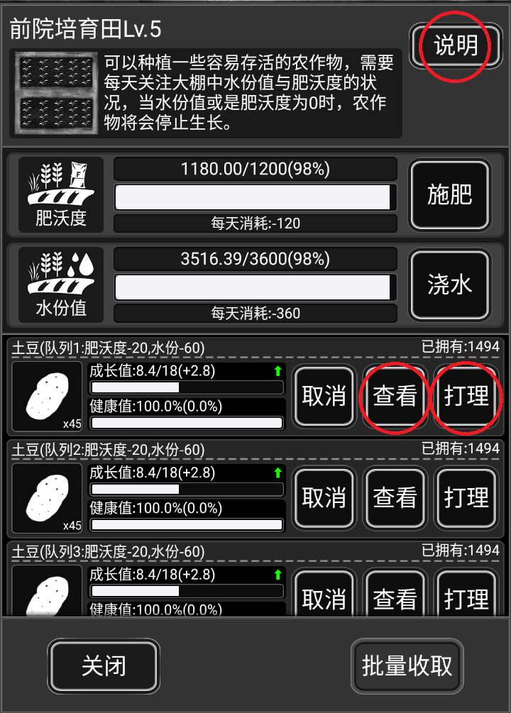 炼狱培育田种植的操作(施肥浇水打理)