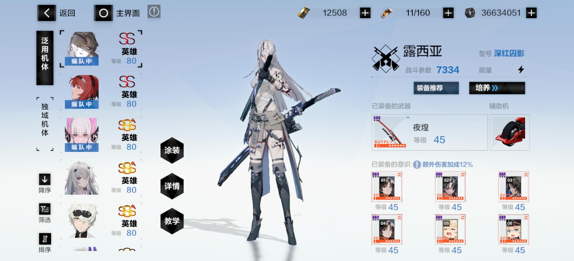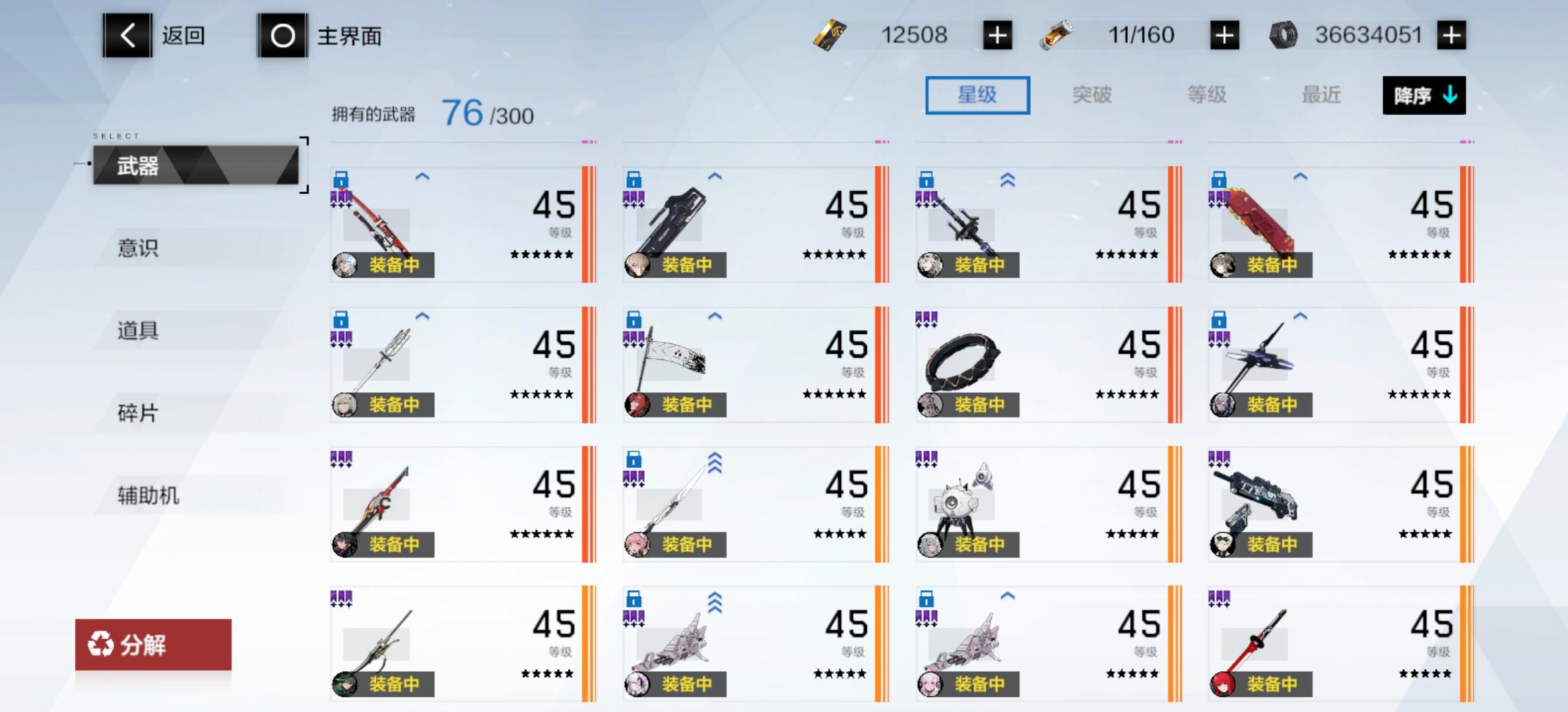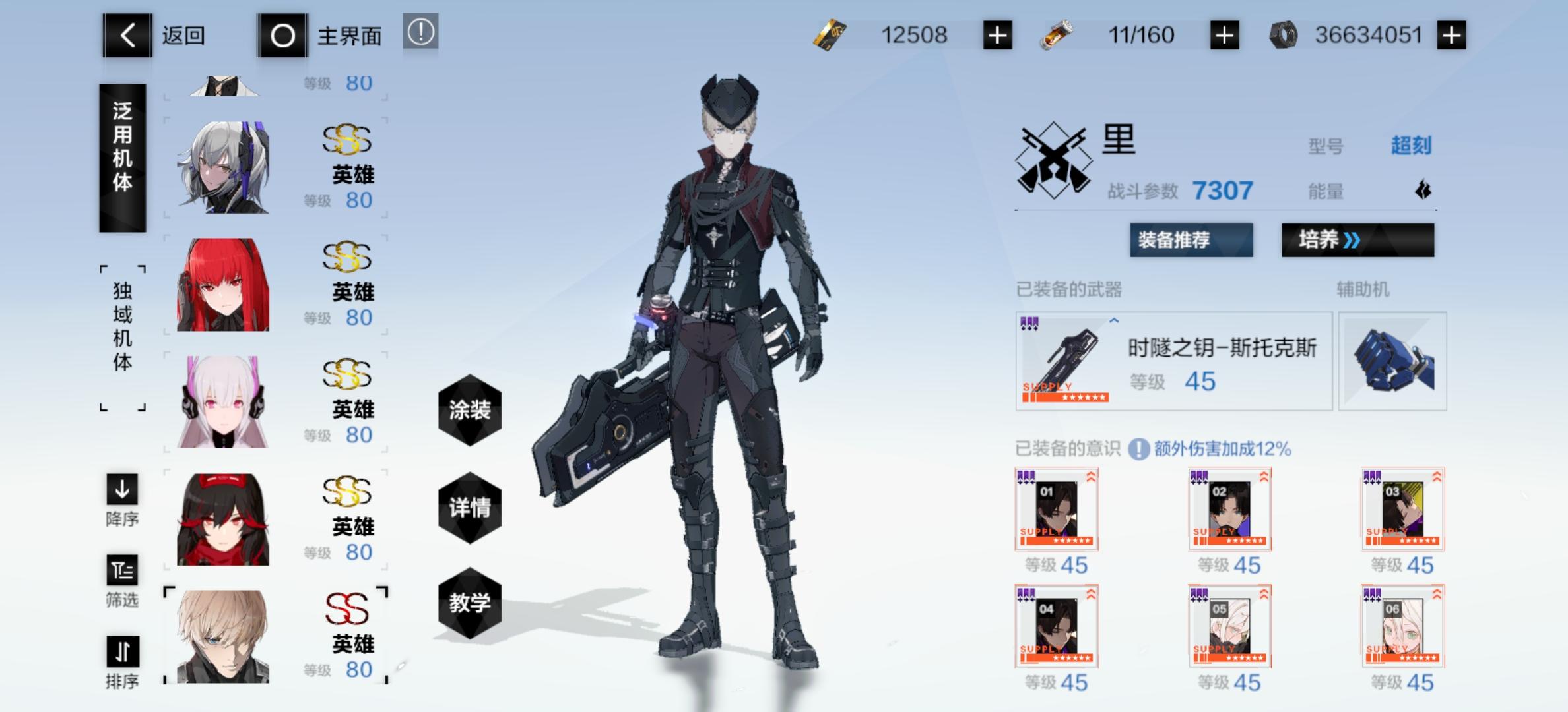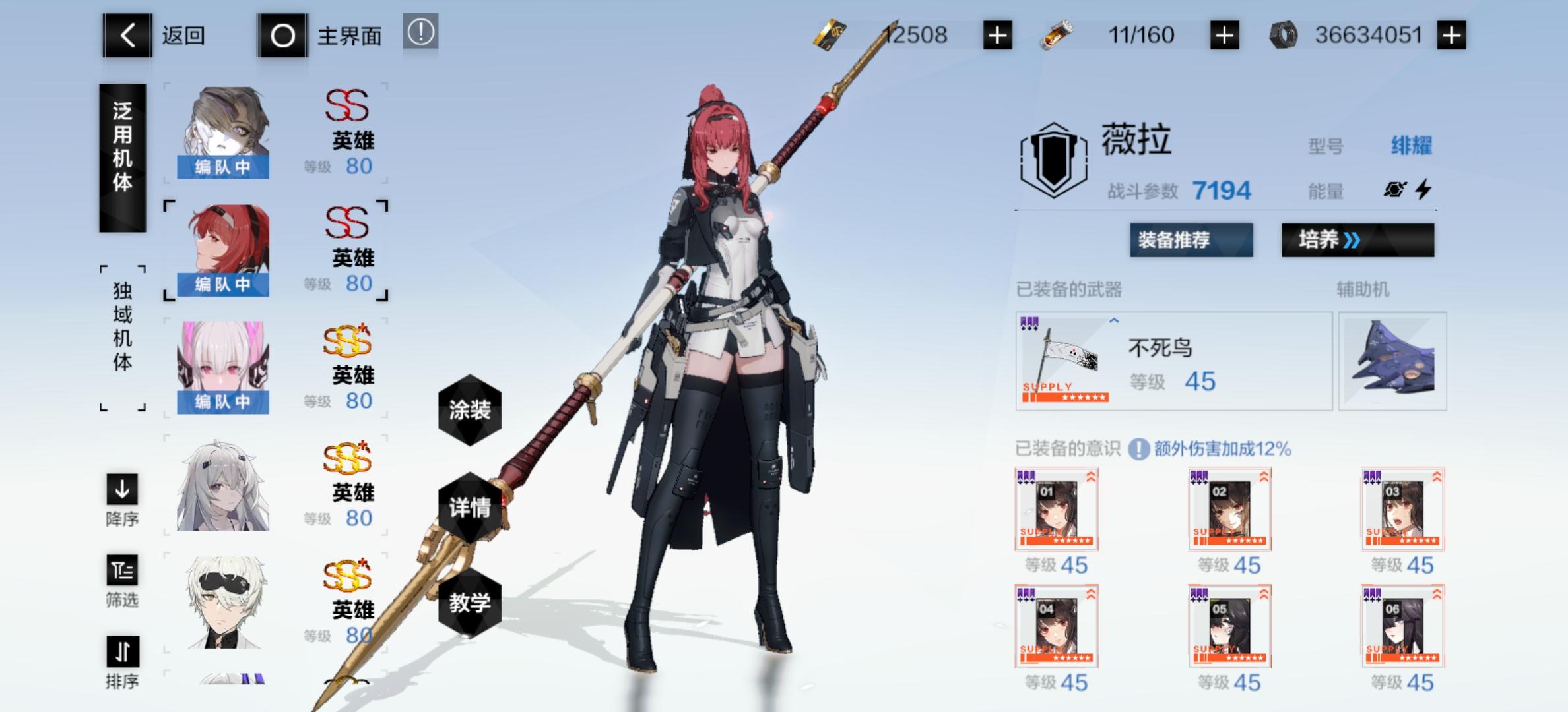 号上还有一堆体力没有用,还有一个武器共鸣,二代c除了三七都是ss3专武带一共,装甲都是ss带专,骡子是3s,就暗队和冰队比较拉,露娜和冰露和万华都是单s,凭证也还有1w3左右