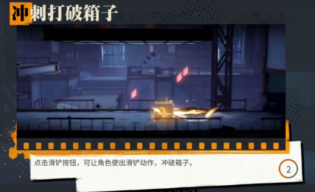 游戏的新手指导是以电影《龙潮笔迹》的放映来表现的,我们需要操作角色——光,根据游戏的提示完成基本操作,例如利用冲刺技能攻击敌人和打破箱子。