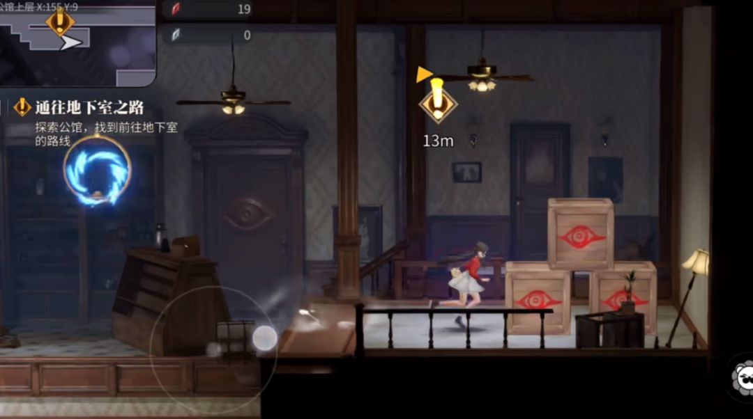 离开电视机房间,一路往前,看到这里有三个箱子,用冲刺撞破获得钥匙,然后折返到上面开门就可以完成当前“通往地下室之路”的任务