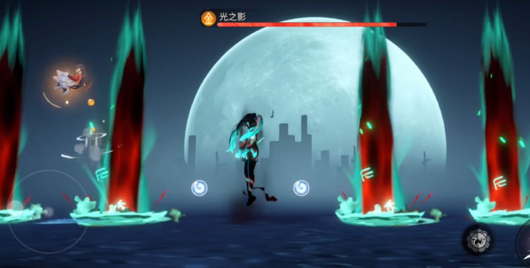 前期的新手指引都比较简单,根据提示轻轻松松就可以完成。最后我们来到稍微有点难度的新手指导boss战,boss是主角的“影”。战斗的方式主要是靠操作主角灵活的走位,以及利用冲刺撞击boss和吸收场景掉落的龙珠进行还击。