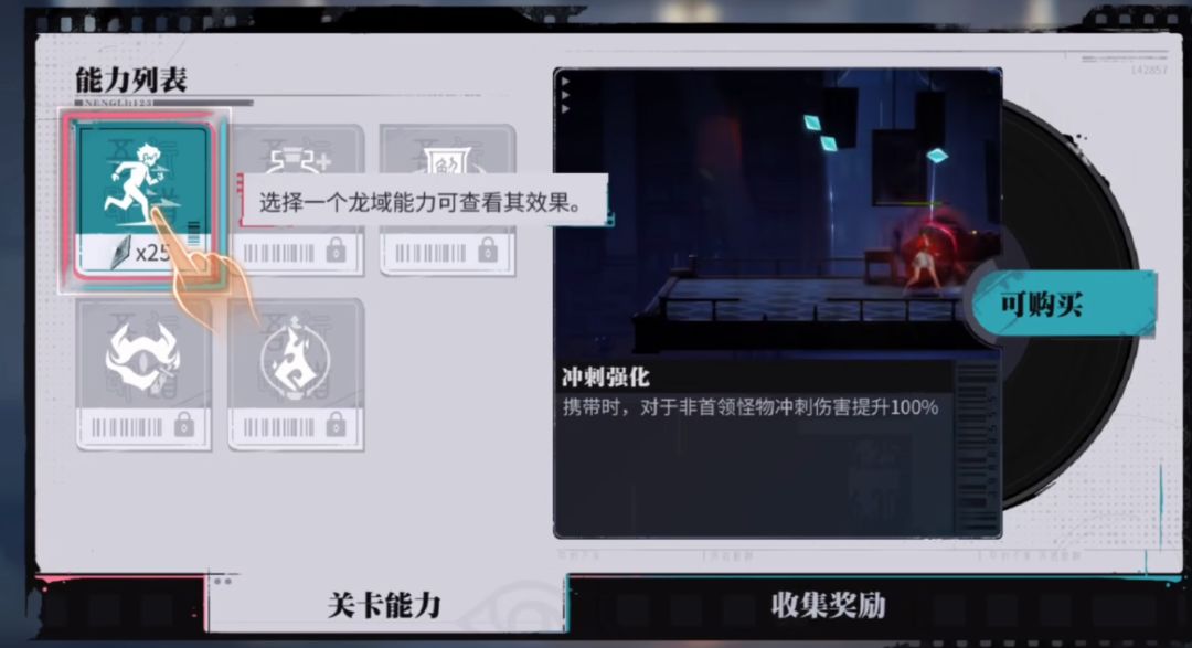 下一个场景中间位置隐藏着一个宝箱,可以中途冲刺到达平台,获得经验道具。