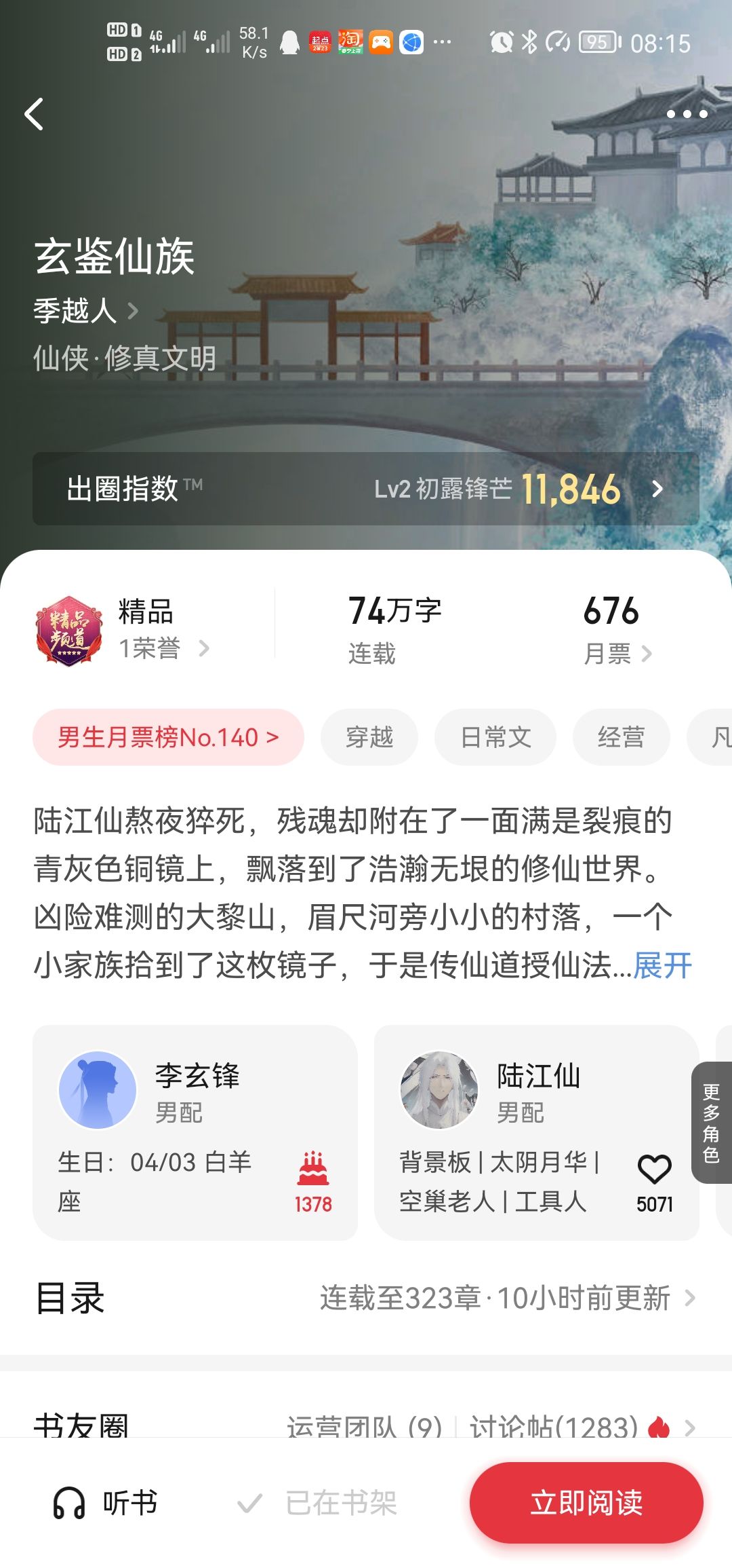 起点最顶尖的家族群像文,没有之一。建议所有喜欢看家族群像文的都来看