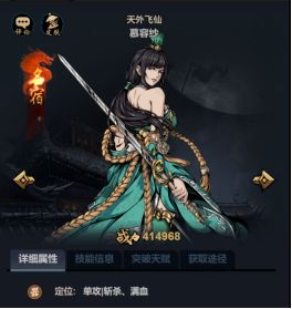 慕容纱属于单点流,而且极其擅长首轮爆发,敌方有残血的情况下慕容纱可以很好的做出收割,因为她拥有着高爆发的无视防御斩杀能力还有帮助队友全体门徒免控的技能优势,前期玩家选择热度较高门徒。