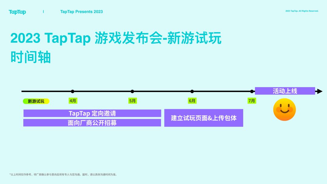 本次新游试玩将与 TapTap 游戏发布会一同举办,如您的游戏特别优秀,也将有机会再发布会获得展示。