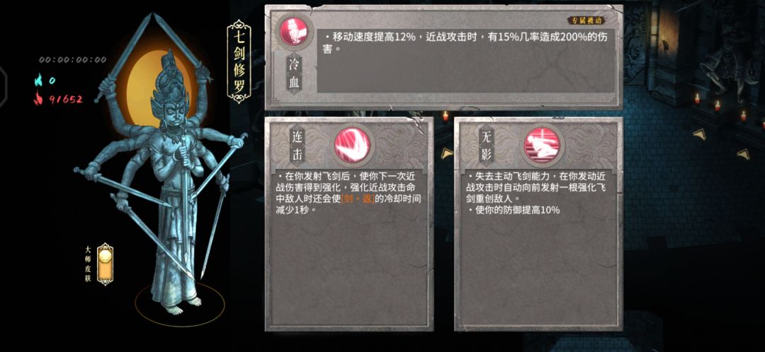 流派选择连击,即七剑1,可以说是最无聊的一个角色了。由于七剑修罗和流派本身的被动都要靠近战攻击而触发,且飞剑本身并没有属性伤害,所以极力推荐双修。想专精飞剑的话还是开局堕龙好了,毕竟百分百增伤不得不爱。