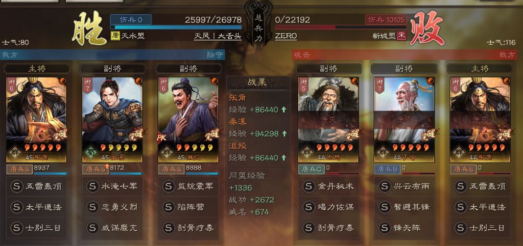 这是黄巾联动的常规用法之一,师承SP关羽的雷水组合不仅因双核输出更有保障,控制也是杠杠!
