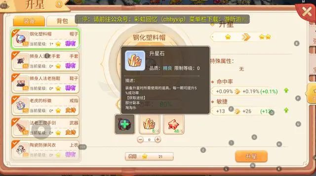 永恒岛之彩虹回忆手游,装备升星玩法介绍