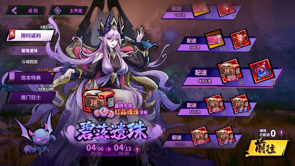 活动期间,在魂珠配送卡池消耗配送道具,完成配送任务即可领取奖励。