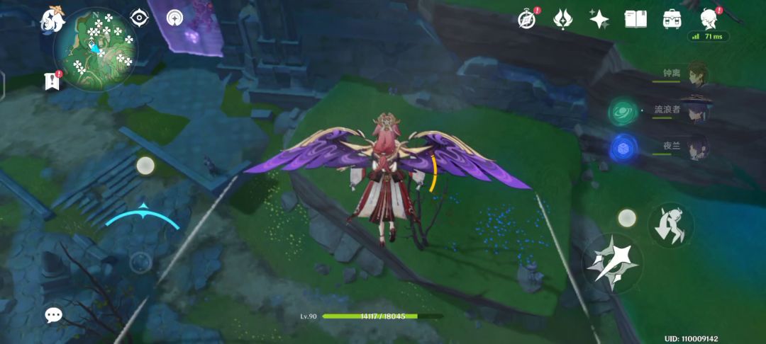 在下降到快要与那个浮岛持平的高度时,可以看到,在浮岛的左侧对面的山壁上,便是第57个绯樱绣球。