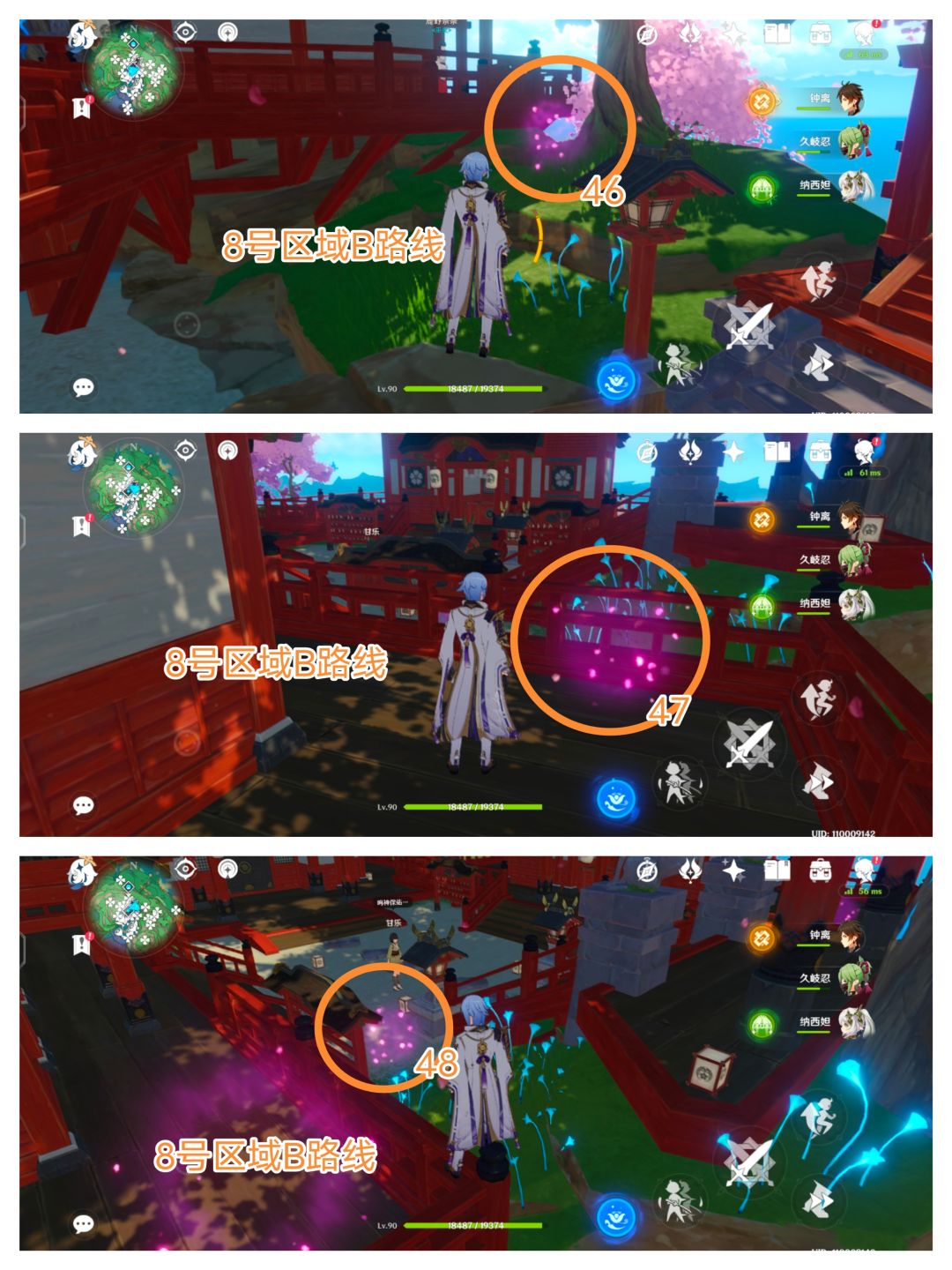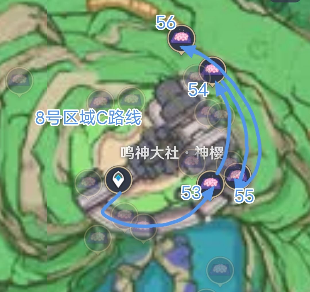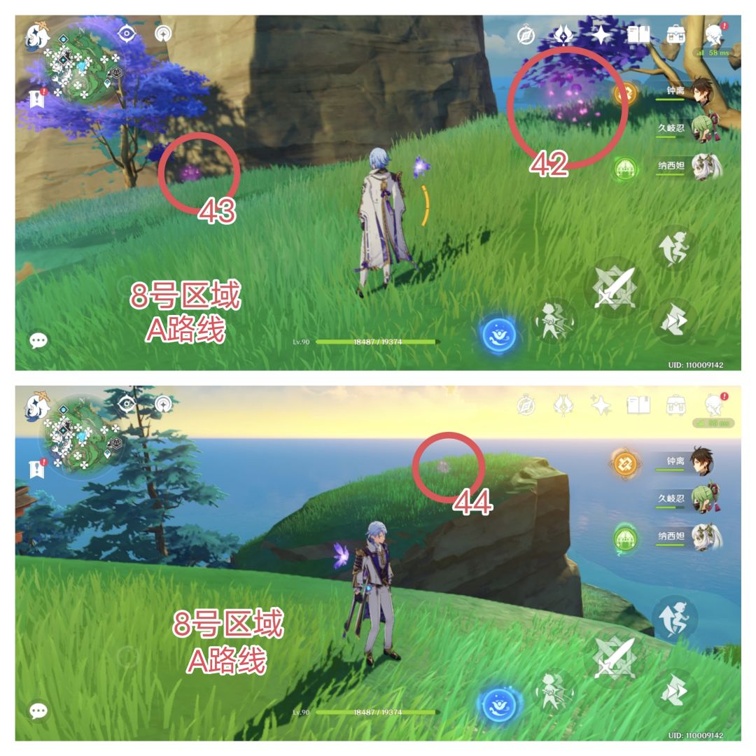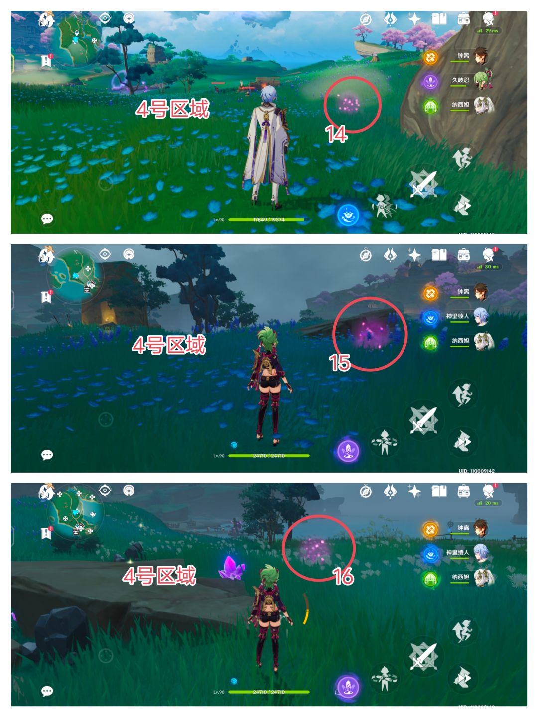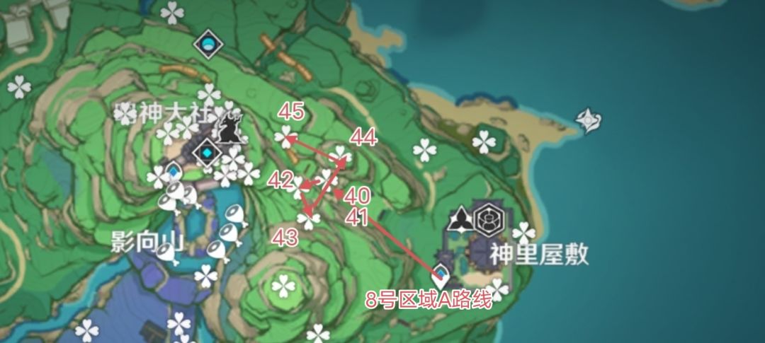 由于绯樱绣球分布的十分密集,下面我将结合米游社大地图分多个线路,将这块区域继续细分,来讲解。