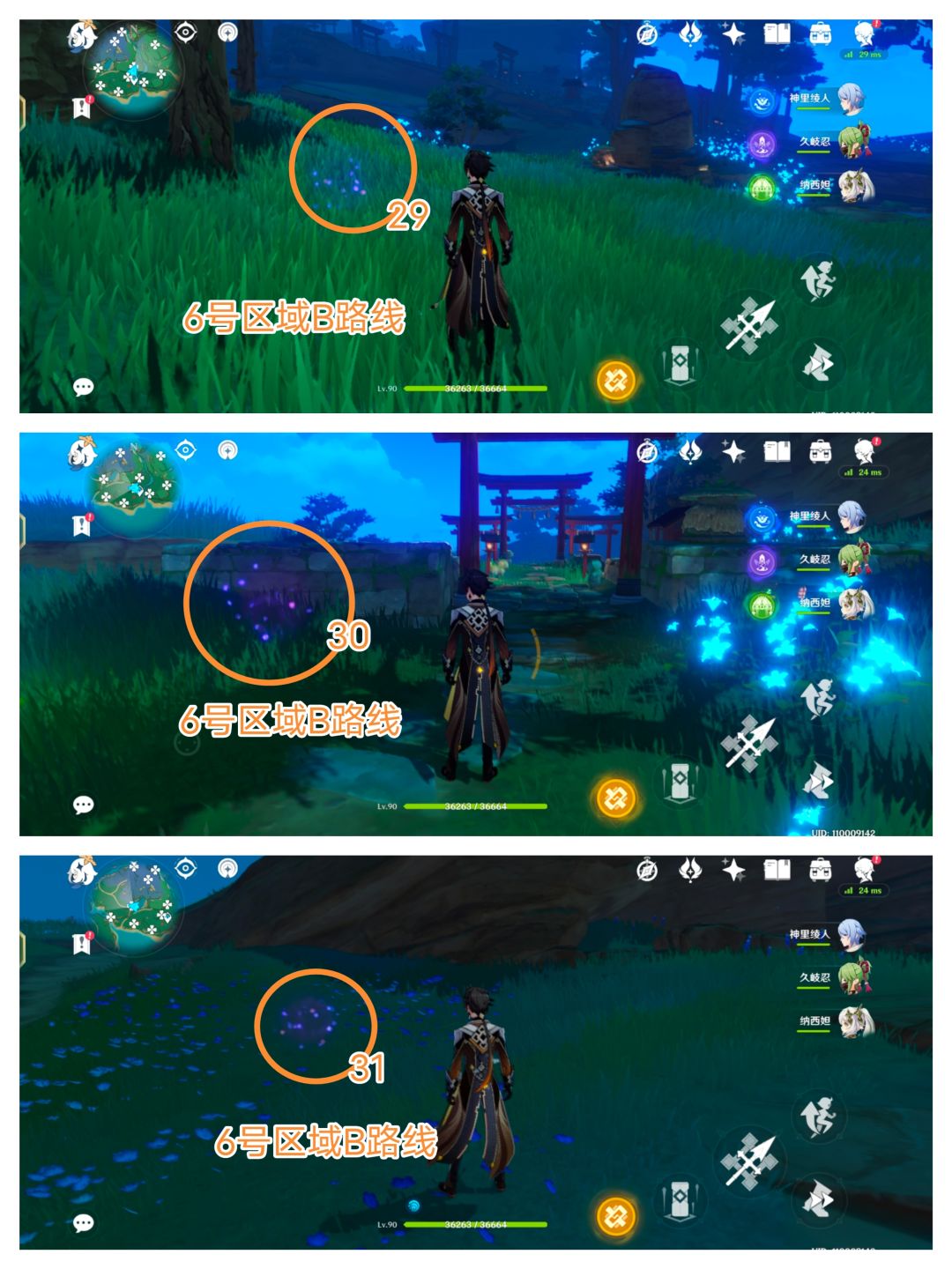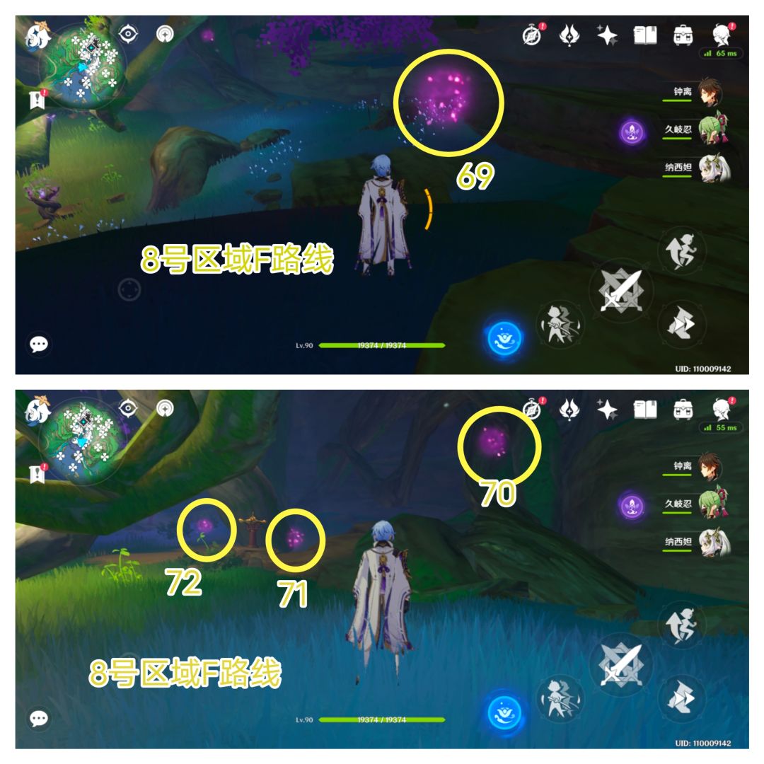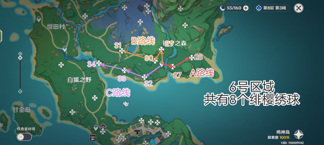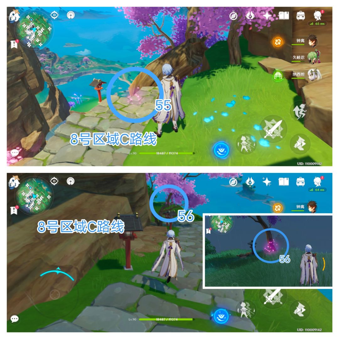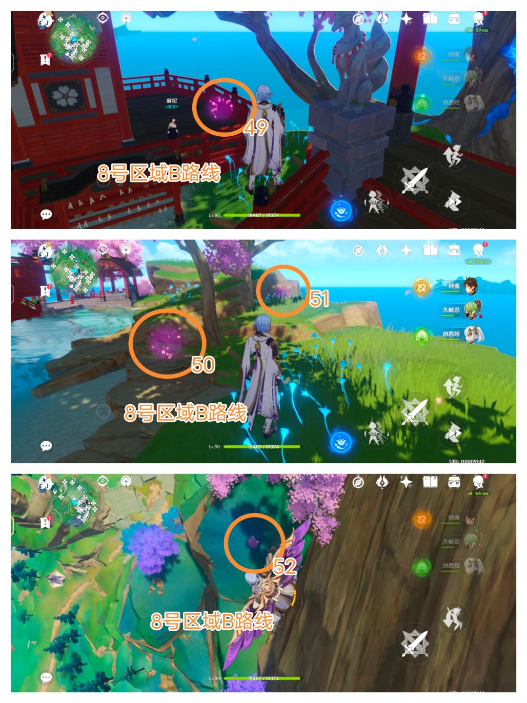 由于绯樱绣球分布的十分密集,下面我将结合米游社大地图分多个线路,将这块区域继续细分,来讲解。
