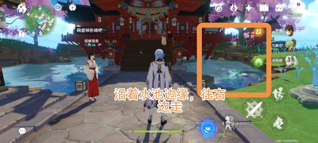 传送至传送点后,沿着水池边缘出发,向右走,绕一圈。