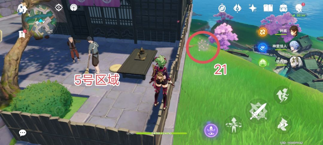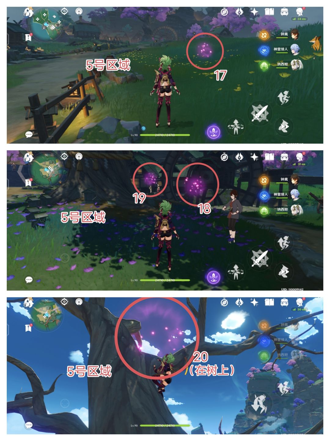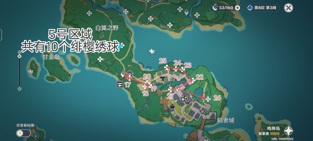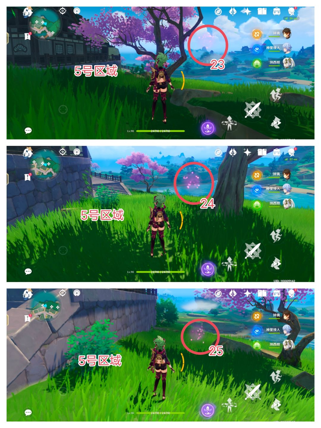 5号区域共有10个绯樱绣球,大致位于稻妻城附近,皆位于地表。